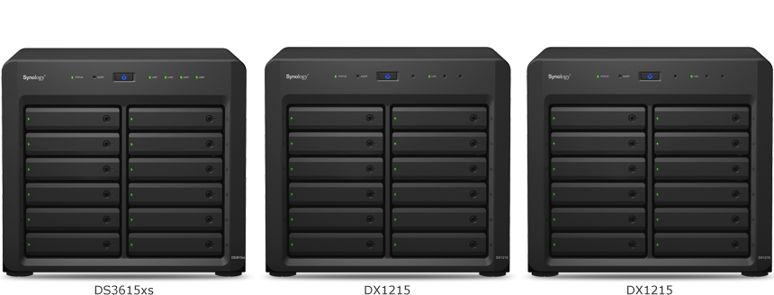 擁有 12 個硬盤托盤的 DS3615xs,通過連接至兩臺 DX1215 擴充設(shè)備2,總?cè)萘靠蓴U充至最多 216TB3,并能快速將單一存儲空間的容量實時擴充至 108TB。當存儲空間接近上限時,DS3615xs 可輕松擴充至多達 36 顆一般硬盤或 SSD 硬盤,提供靈活擴充的容量及均衡的效能,能符合不同應用程序及程序的需求。