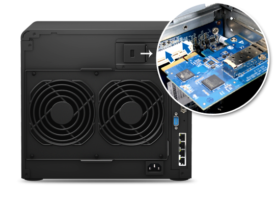 除了內(nèi)建的四個 Gigabit 網(wǎng)絡(luò)埠之外,DS3615xs 內(nèi)建一個 PCI Express 3.0 x8 插槽來安裝 10GbE 的網(wǎng)絡(luò)適配器 (NIC),藉以提升網(wǎng)絡(luò)聯(lián)機帶寬,為你存儲系統(tǒng)上需要處理大量數(shù)據(jù)的應用程序提供優(yōu)越效能。此外,DS3615xs 內(nèi)建每秒 6Gb SATA III 介面支持,可將 SSD 的高速傳輸效能完整發(fā)揮,確保系統(tǒng)處理多項任務(wù)時,仍維持良好的傳輸效率。