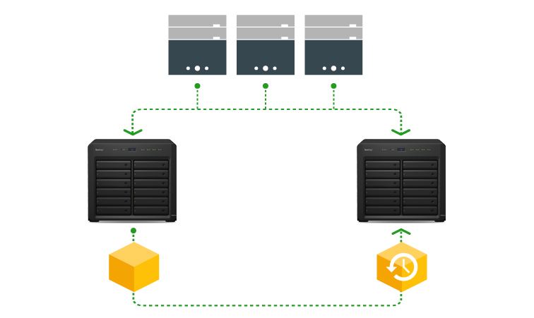 對于所有企業(yè)而言,提供不中斷的服務(wù)是非常重要的目標。DS3615xs 提供 Synology High Availability (SHA) 技術(shù),其連接了主動與被動服務(wù)器,前者的所有數(shù)據(jù)皆鏡射至后者,當主動服務(wù)器出現(xiàn)錯誤時,被動服務(wù)器馬上取而代之。共享文件夾同步可將數(shù)據(jù)實時復制至另一臺遠程的 Synology NAS,在復原時間目標 (Recovery Time Objective, RTO) 內(nèi)回復企業(yè)因服務(wù)器故障而中斷的服務(wù)。此外,通過多網(wǎng)絡(luò)端口鏈接,DS3615xs 在單一網(wǎng)絡(luò)功能異常時,也能提供備援機制。