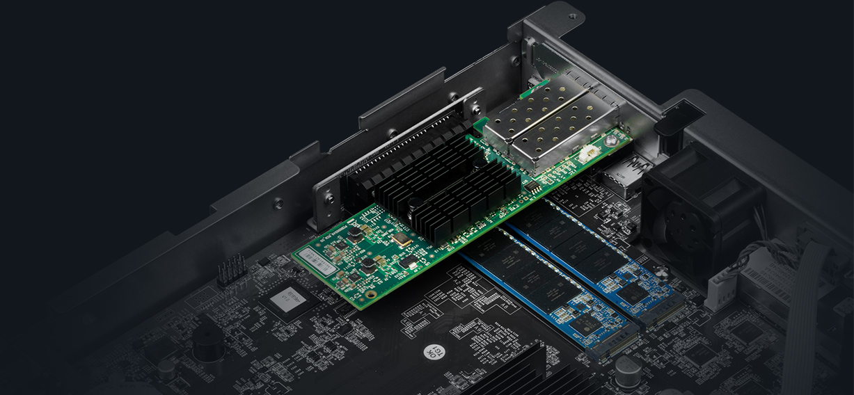 配備 PCIe 3.0 插槽,RS1619xs+ 支持安裝 10GbE/25GbE NIC 以實現(xiàn)快速數(shù)據(jù)傳輸。內(nèi)置 M.2 2280 SSD 緩存插槽能進一步增強 IO 密集型任務(wù),如虛擬化或郵件服務(wù)器部署。