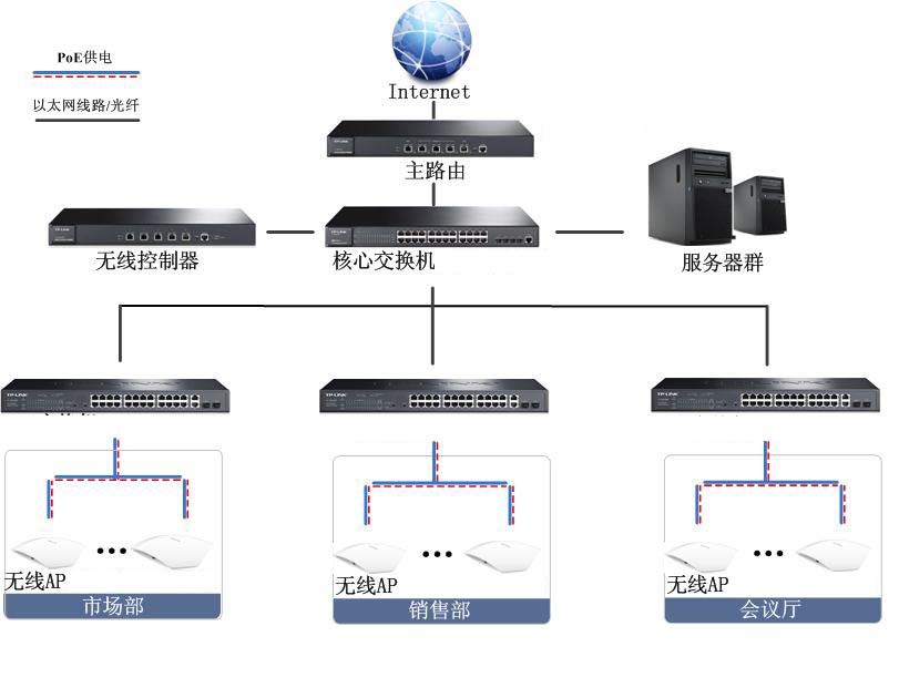 企業(yè)單位網(wǎng)絡(luò)較為復(fù)雜,對網(wǎng)絡(luò)可管理性與可維護(hù)性要求較高。無線AP部署位置的靈活性,并且不能成為火災(zāi)隱患。