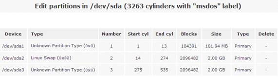 然后點(diǎn)擊磁盤“/dev/sda”,系統(tǒng)會顯示當(dāng)前磁盤的詳細(xì)分區(qū)信息。如圖