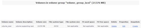在右側(cè)的“Volumes section”區(qū)域選擇“Manage Volumes”選項(xiàng),可以看到剛剛創(chuàng)建的 iSCSI 卷信息。如圖
